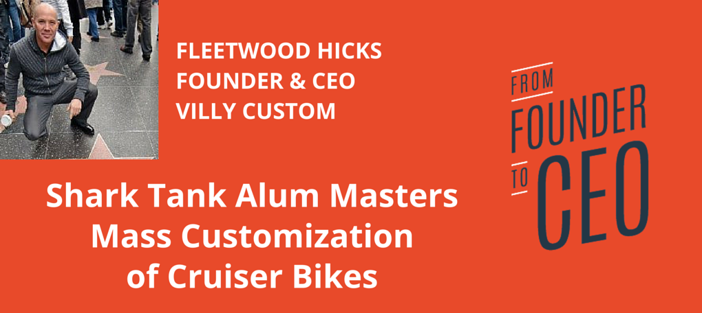 Fleetwood Hicks is the Founder & CEO of Villy Custom and he is also a Shark Tank alum (Mark Cuban and Barbara Corcoran are investors in Villy Custom) who has mastered the art of mass customization of beautiful cruiser bikes for individuals, corporations, active living communities, hotel resorts, and more. I know you’ll appreciate his down-to-earth style and his key advice for Startup CEOs that he learned from his own experiences of success and failure.