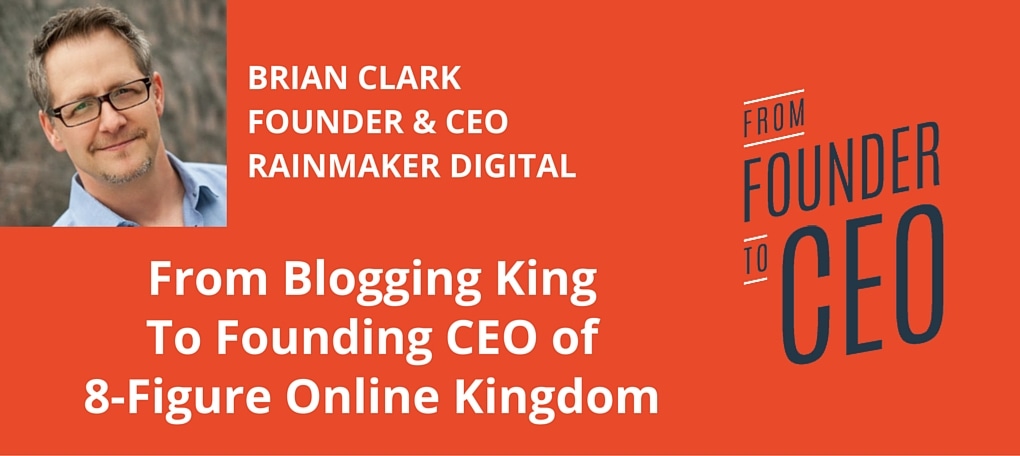 Brian is digital entrepreneur royalty. He has created MASSIVE value for MANY businesses for MANY years and because of that he has earned tremendous success as a Founder and CEO. You may know him for his WILDLY successful copyblogger platform. But, as a leader he has grown that one platform to a multimedia company that contains many brands all under the Rainmaker Digital umbrella – a complete marketing technology platform. As with all our guests, he gets detailed about his personal journey from Founder to CEO and talks about: