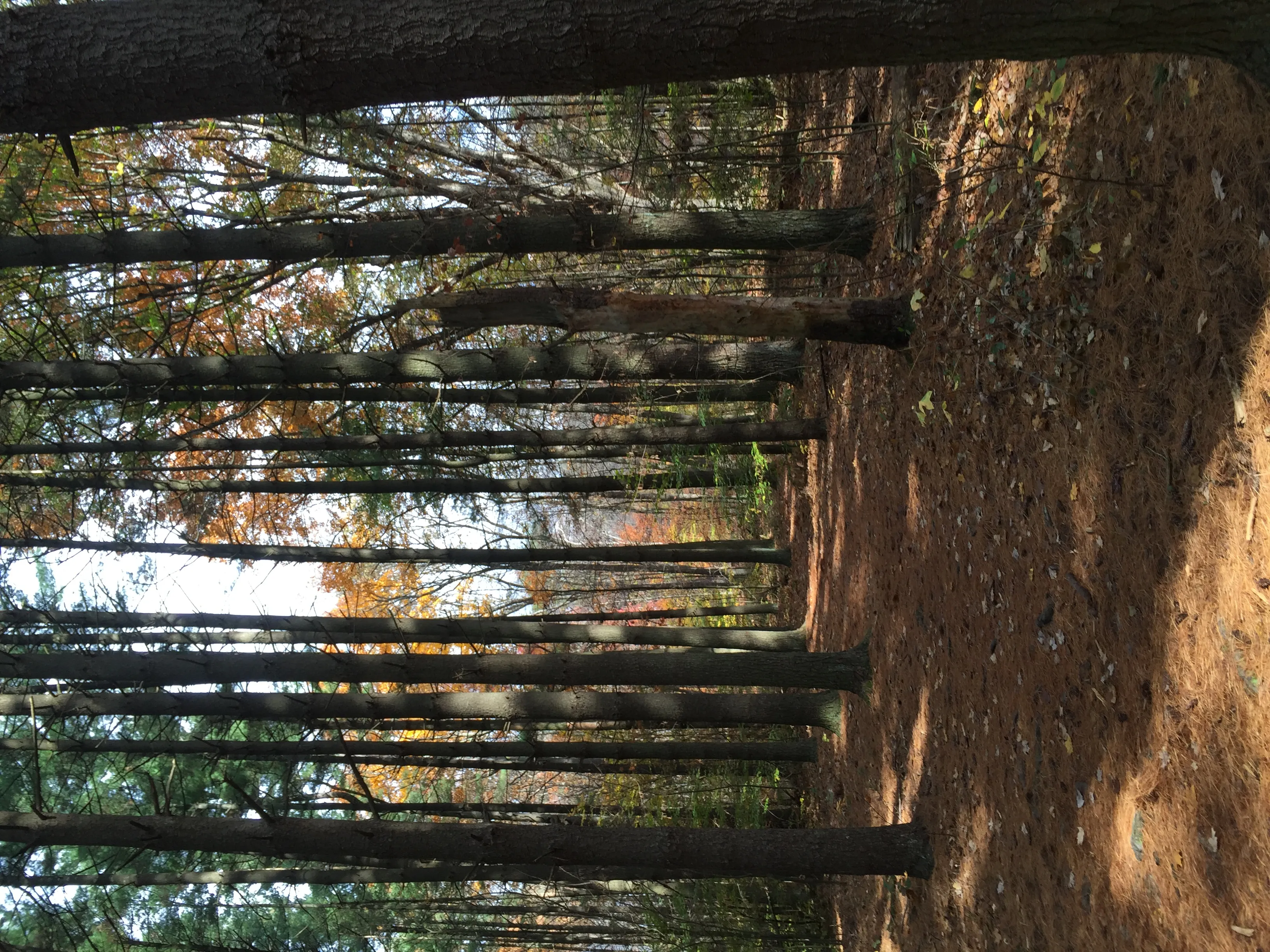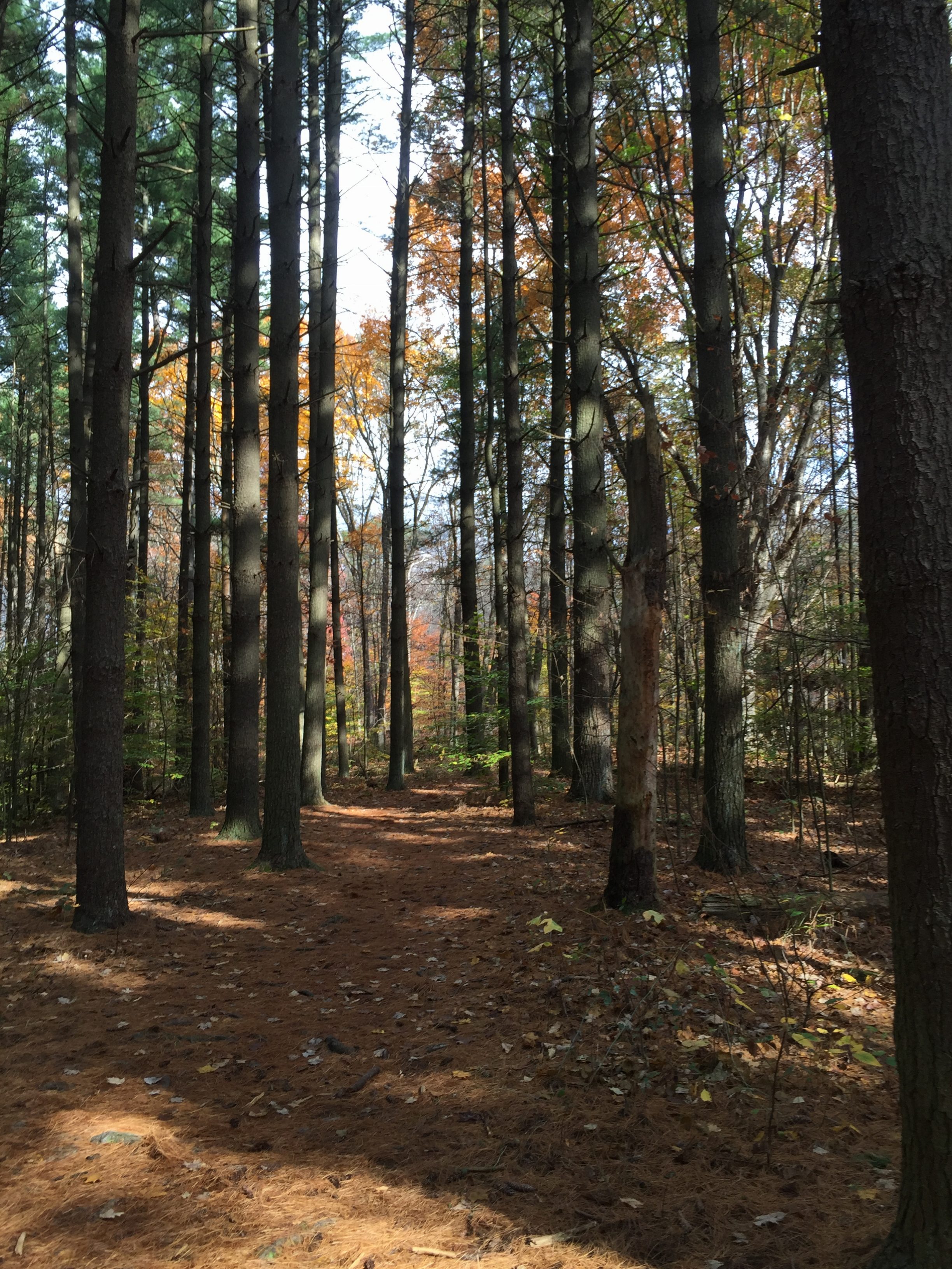 The forest floor is covered with an inch of red-orange pine needles that once dropped from tall, fragrant pine trees. The sun dances in between the swaying evergreens and the only thing you can hear is the slight sound of the still attached, green needles whispering to each other as the wind gently moves them.