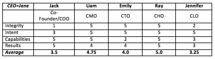 When one of my CEO clients is having a hard time with a leadership team member, vendor, investor, or someone that is key to the company’s success, I have them rate that person on a trust scale of 1-5 with each of the above dimensions. “1” is “horrible” and “5” is “fantastic.” You’ll quickly diagnose what YOUR issue is with that person. And, that’s a great starting point for more questions and greater inquiry.